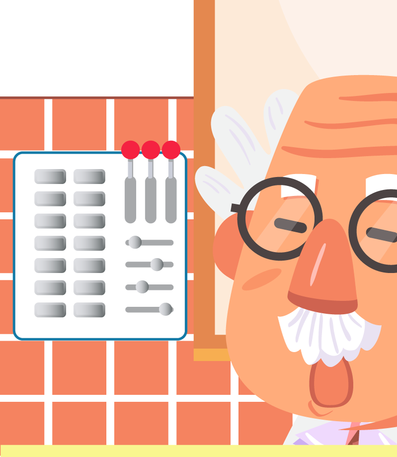Professor Wellington hat unzählige Knöpfe und Hebel in seinem Labor. Um die richtige Konzentration für die Herstellung der Tablette einzustellen, ist es unbedingt notwendig, dass er die richtigen Hebel und Knöpfe bedient.